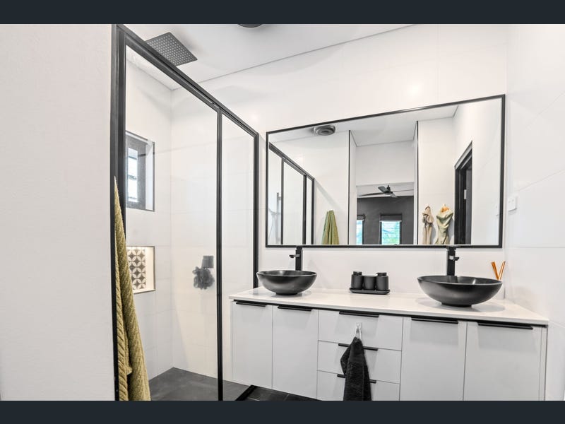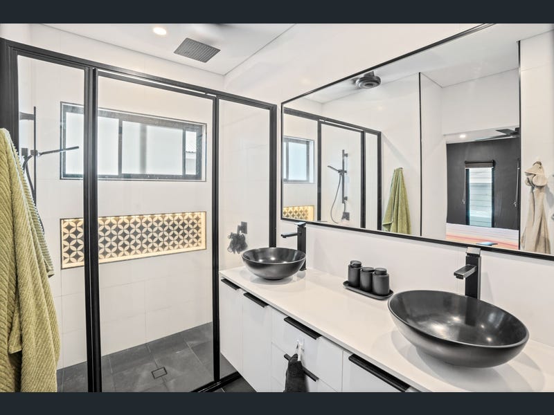 Step inside to experience contemporary living with split system air conditioning, ceiling fans, and a thoughtfully designed interior. The home features three bedrooms and two bathrooms, including a master suite with an ensuite complete with dual vanities and showers. The modern kitchen is equipped with a gas cooktop, ideal for culinary enthusiasts, while the living areas flow seamlessly to a stunning outdoor space overlooking a sparkling swimming pool perfect for entertaining or relaxing.